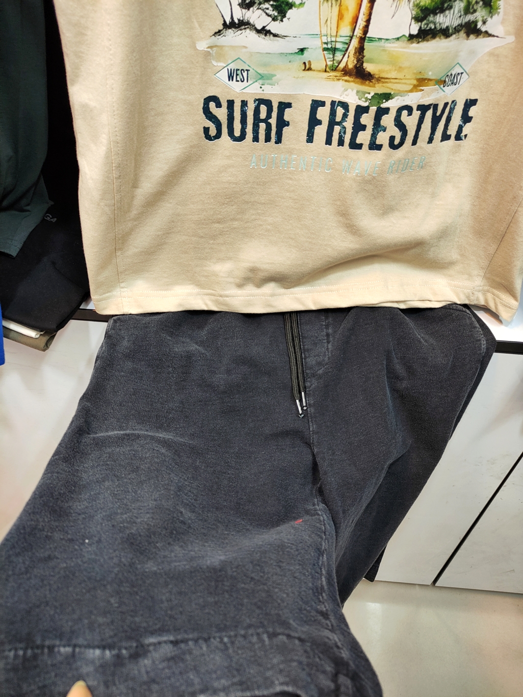 شلوارک ست طوسی تیره سنگشور و زیر زانو میباشد.