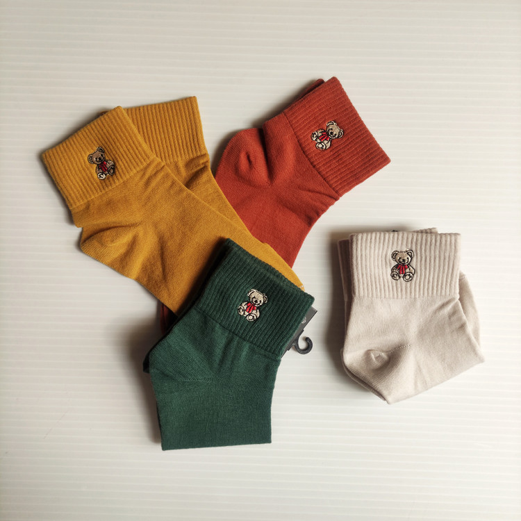 جوراب نخی دخترانه نیم ساق طرح تدی